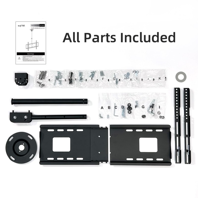 Suptek Ceiling TV Mount Fits Most 26-55 inch LCD LED Plasma Panel Display with Max VESA 400x400mm Loaded up to 45kg/100lbs Height Adjustable MC4602