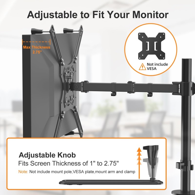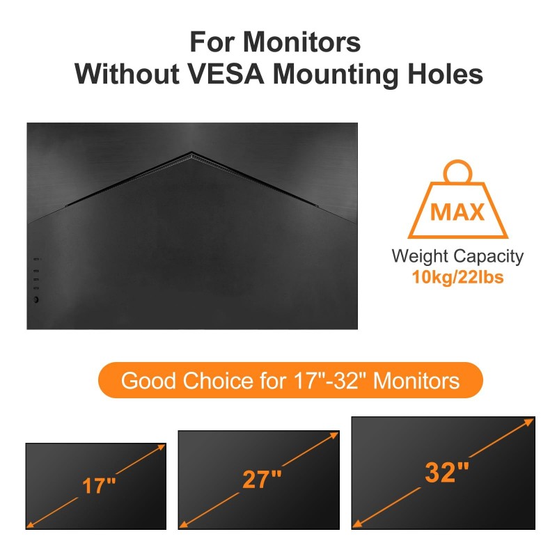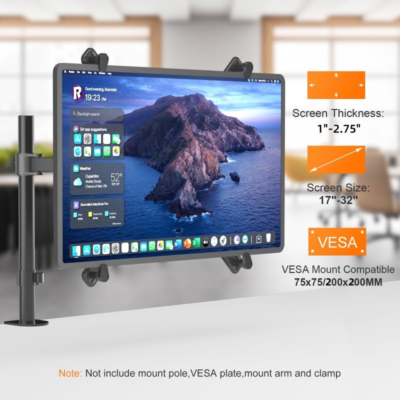 COMPATIBILITY -Vesa monitor mount adapter fit for most 17" to 32" monitors, screen thickness of 1" to 2.75".Please check the specification and size of your monitor before purchasing.