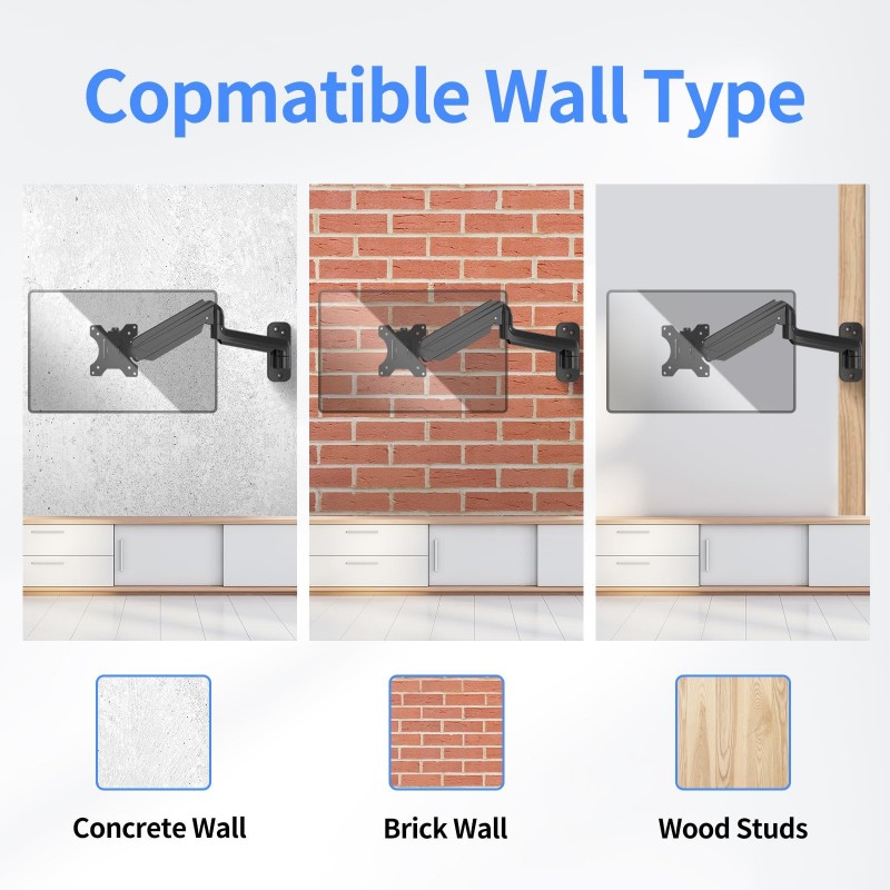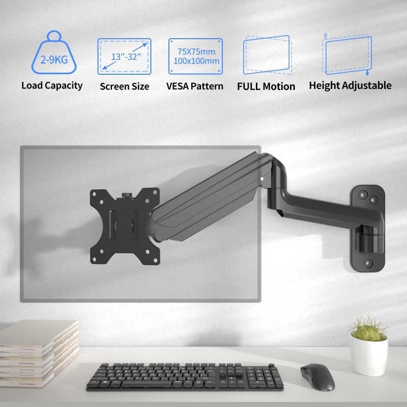 Compatibility -This Single Monitor Wall Mount Widely Fits 17 to 32 Inch computer Screens with VESA pattern 75x75mm and 100x100mm, supports 4.4-17.6lbs monitors.